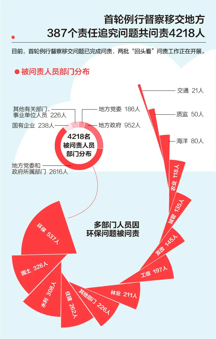 近日,在新一轮中央生态环境保护督察启动前夕,中办、国办印发《中央生态环境保护督察工作规定》,首次以党内法规形式,明确督察制度框架、固化督察程序和规范、界定督察权限和责任,展示了中央推进环保督察的决心。中央生态环保督察究竟有哪些好经验、好做法?让两办出台《规定》将其固化,施之长远。一组数字带您快速了解首轮中央生态环境保护督察及“回头看”成效 。