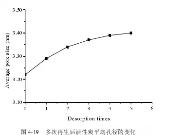 随着再生次数的增加,活性炭再生后的平均孔径逐渐增大,且增大的幅度逐渐变缓。表明多次再生后活性炭的再生性能逐渐变差。