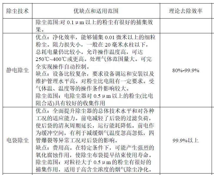 颗粒物控制措施可采用布袋除尘器、机械除尘器、静电除尘器、电袋除尘器、湿法除尘等,运行得当预计均可达到标准限值。还有一些部分去除效率较差或初始浓度高的企业,可以通过提高收集率、调整进气口面积、优化电场电压水平及峰值电压、把控布袋除尘器清灰强度等措施,强化运行管理,提高去除效率。